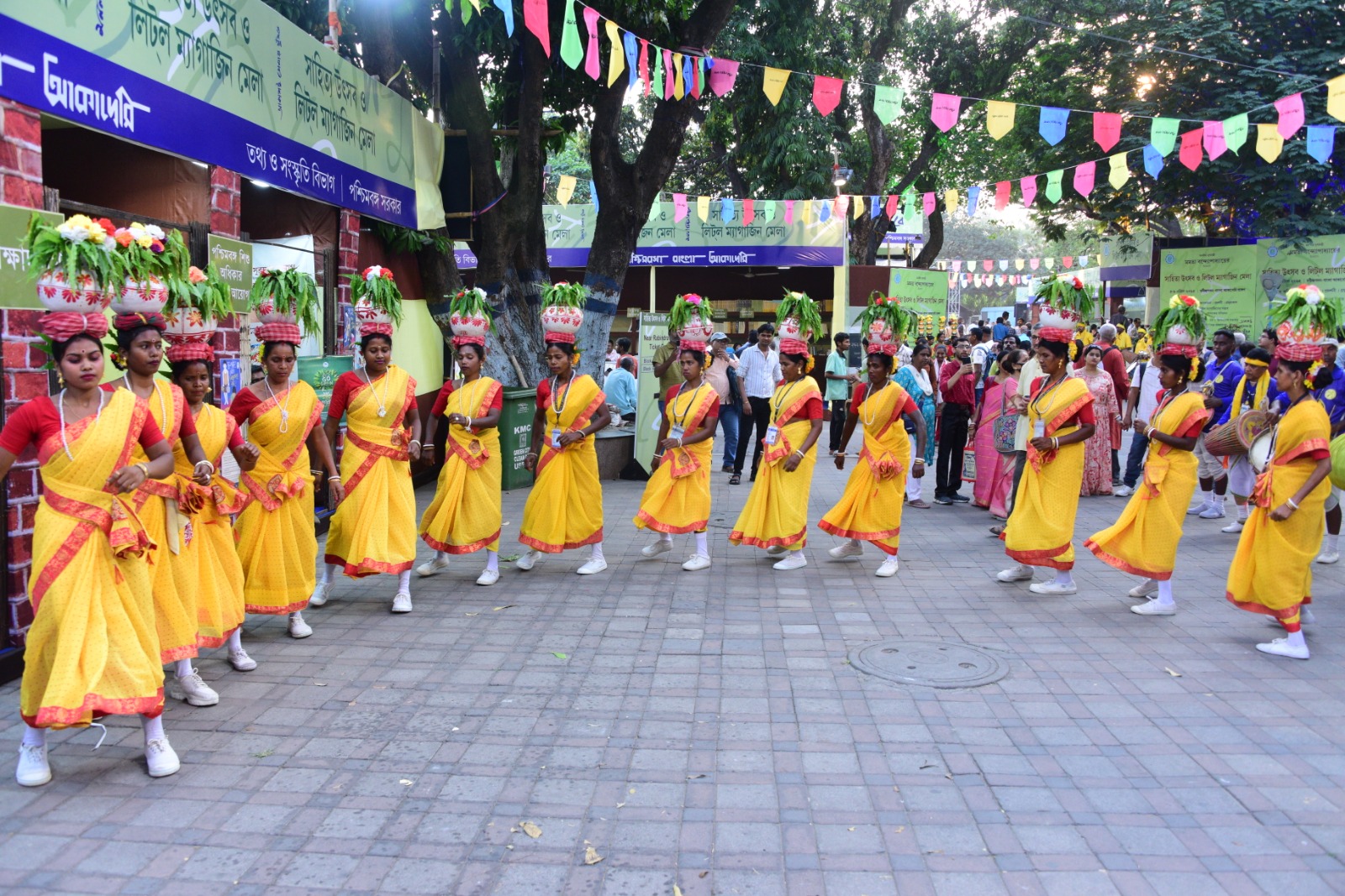 From 5- 9 April 2025 at the premises of Rabindra Sadan- Nandan- Paschimbanga Bangla Akademi like other years Sahitya fUtsav and Little Magazine Mela was held. On 5 April the opening ceremony of Sahitya Utsav and Little Magazine Mela started at 3 pm. On that occasion Adivasi dance was performed by the folk artistes from North 24 Parganas, Birbhum, South 24 Parganas and Hooghly districts, Sreekhol Badya and Baul songs was performed by folk artistes from South 24 Parganas, folk artistes from Howrah performed Chhau dance, from Purba Bardhaman performed Ghora Nach and from Birbhum performed Bohurupee. Other than this on 5 April evening folk artistes from Birbhum performed Baul song.On 6 April folk artistes from Nadia district performed Fakiri song. On 7 April folk artistes from South 24 Parganas performed Bhatiali songs.On 8 April folk artistes from Cooch Behar district performed Bhawaiya songs and on 9 April folk artistes from Paschim Medinipur performed Jhumur songs. In total 130 folk artistes participated in this programme